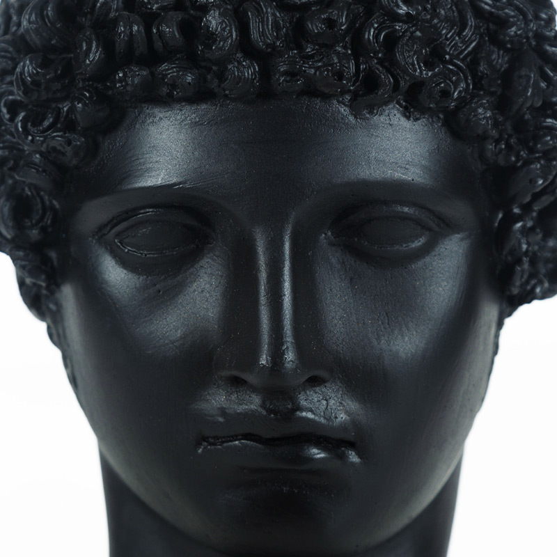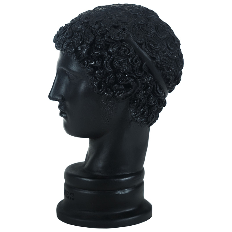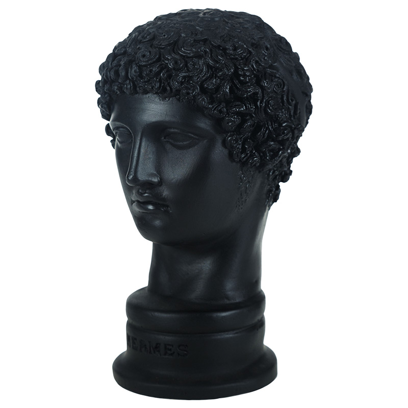 Siyah Hermes Biblo, Zeus ile Maia’nın oğlu olan Hermes tanrılar arasındaki en kurnazı ve hızlısıdır. Roma mitolojisindeki adı Merkür olarak bilinmektedir. Kavalı ve 7 telli liri icat etmiştir. Hermes, Zeus’un habercisi olarak görev yapmaktadır. Bir diğer görevi ticaret yapanlara kılavuzluk yapmak ve dünyanın her yerinde yolcuların özgür haklarını korumaktır. En önemli görevi ise ölenlerin ruhlarını yer altı ülkesine götürmektir. Hermes, Caduceus adında büyülü altından bir değnek taşımaktadır.