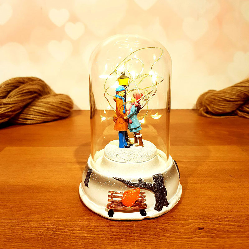 Sokak Lambası Altında Duran Sevgililer Biblosu son zamanlarda en çok tercih edilen hediyeler arasında yerini aldı. Fanus içerisindeki romantik çiftler ve sarılan led ışıklar tercih edilebilecek güzel bir hediyedir.