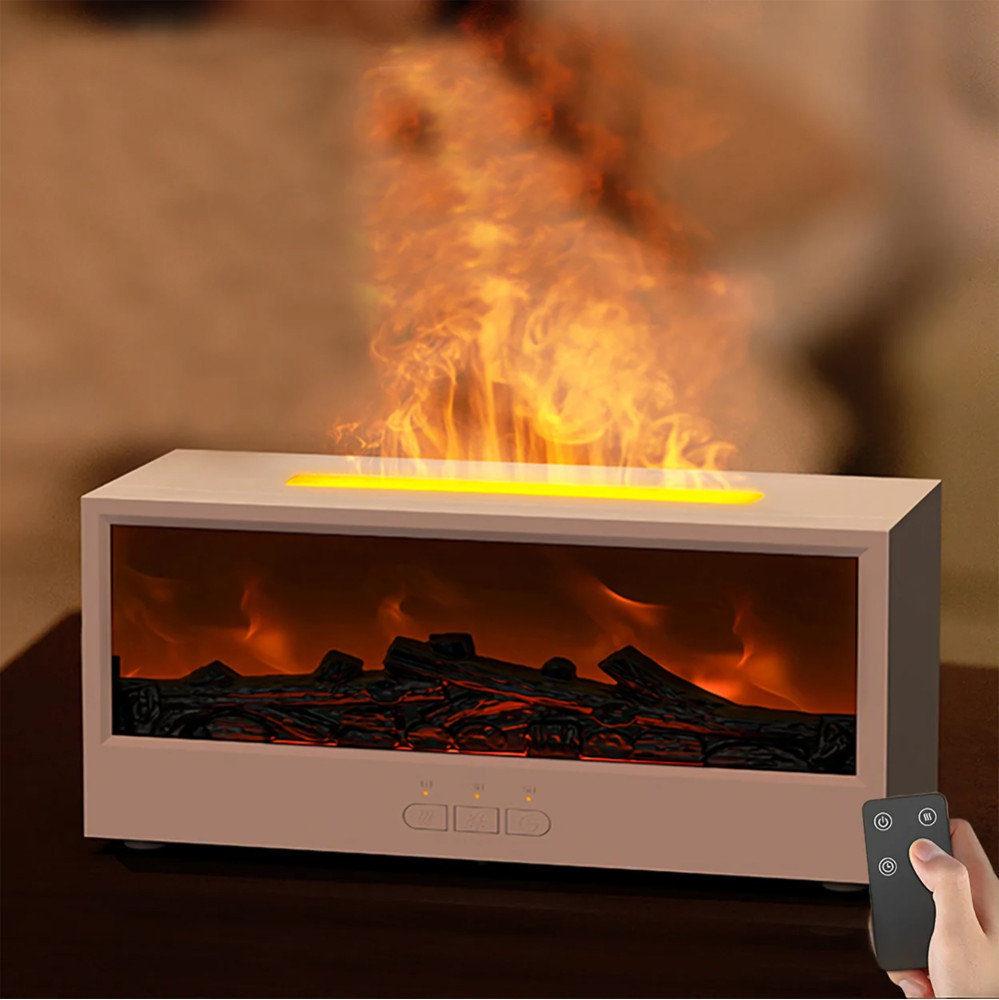 Şömine görünümlü alev efektli hava nemlendirici. LED ışıklı, uzaktan kumandalı, USB ve pilli kullanım. Dekoratif ve şık tasarım.