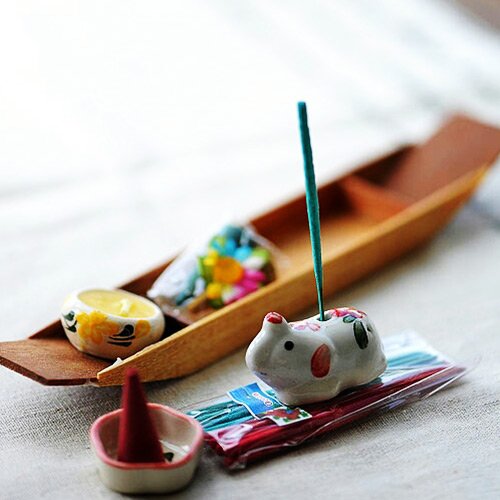 Porselen tütsülükleri ve fil figürlü porselen mumluğu ile romantik bir ortam oluşturmanızı sağlayacak dekoratif bir settir olan Tayland Tütsü Seti.