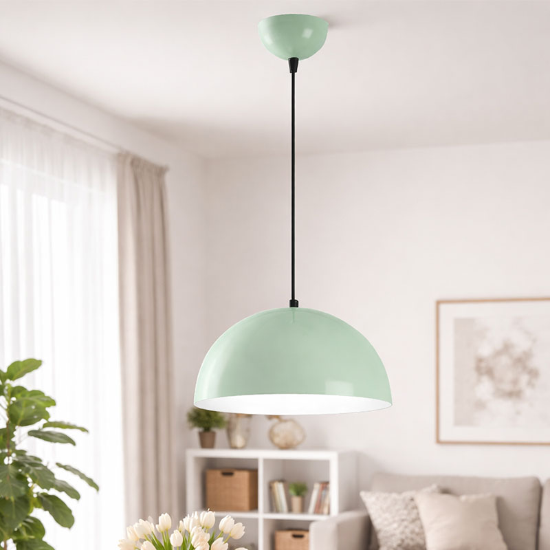 Tekli Sarkıt Mint Yeşili Avize, metal gövdeli, E27 duy uyumlu, 30 cm çapında modern ve şık sarkıt avize modeli. Ev ve ofisler için ideal.