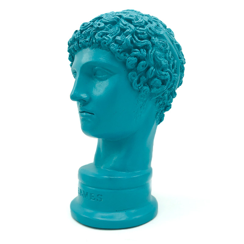 Turkuaz Hermes Biblo , Zeus ile Maia’nın oğlu olan Hermes tanrılar arasındaki en kurnazı ve hızlısıdır. Roma mitolojisindeki adı Merkür olarak bilinmektedir. Kavalı ve 7 telli liri icat etmiştir. Hermes, Zeus’un habercisi olarak görev yapmaktadır. Bir diğer görevi ticaret yapanlara kılavuzluk yapmak ve dünyanın her yerinde yolcuların özgür haklarını korumaktır. En önemli görevi ise ölenlerin ruhlarını yer altı ülkesine götürmektir. Hermes, Caduceus adında büyülü altından bir değnek taşımaktadır.