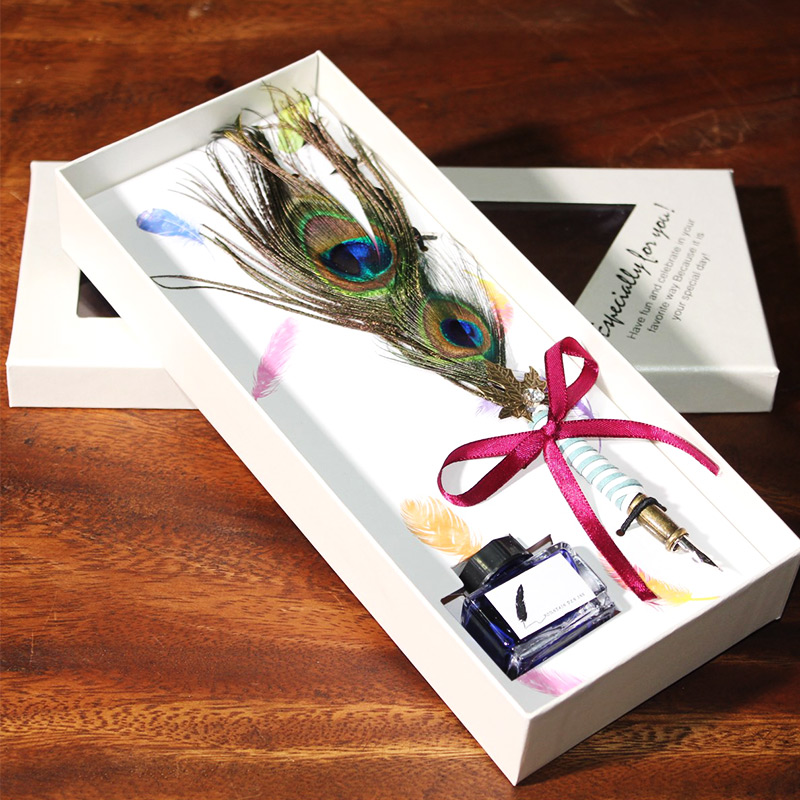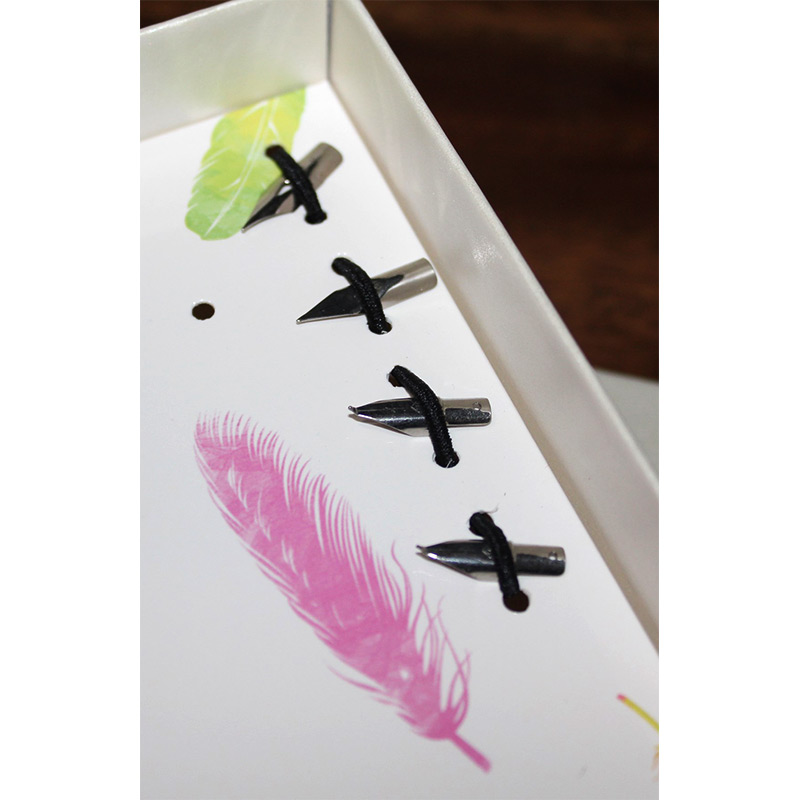 Tüy Divit Kalem Seti tasarımı ile güzel bir hediye olacaktır. İçerisinde,4 adet uç,1 adet mürekkep ve 1 adet tüy divit kalem set bulunur.