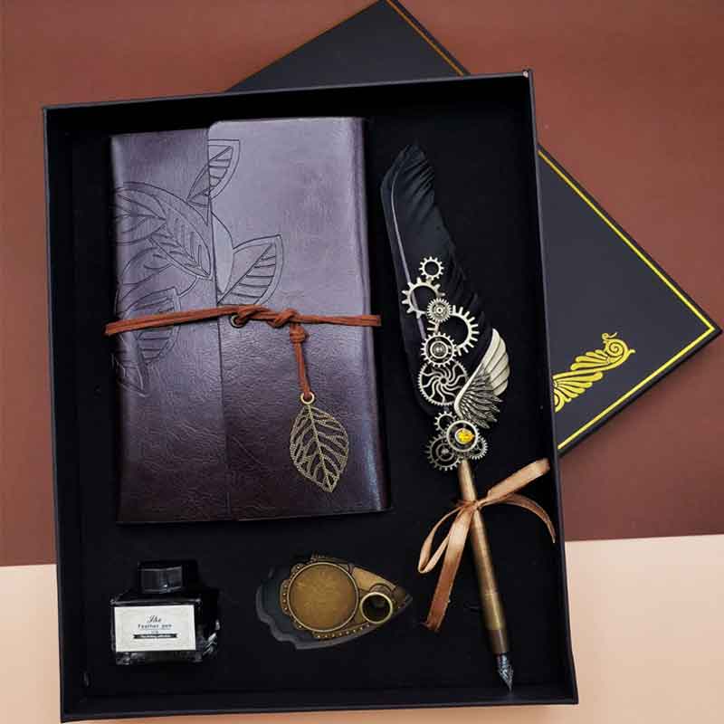 Tüylü Divit Kalem ve Deri Defter Seti AÇIKLAMASI
