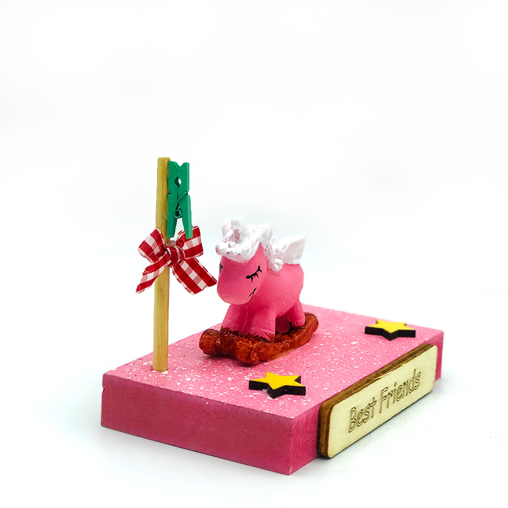 Unicorn Notluk doğal ahşap ve polyester malzemeden imal edilmiştir. Tamamı hand made – el yapımı olarak üretilmektedir. Tüm figürler 3D boyutlu olarak üretilmiştir. Renk tonları canlı ve sağlığa zararsız su bazlı boyalardır. Notluk 11cm yüksekliğinde 12cm boyunda ve 7cm enindedir. Ön kısmında lazer yazı bulunmaktadır. Tarafınıza kutulu biçimde gönderilmektedir.