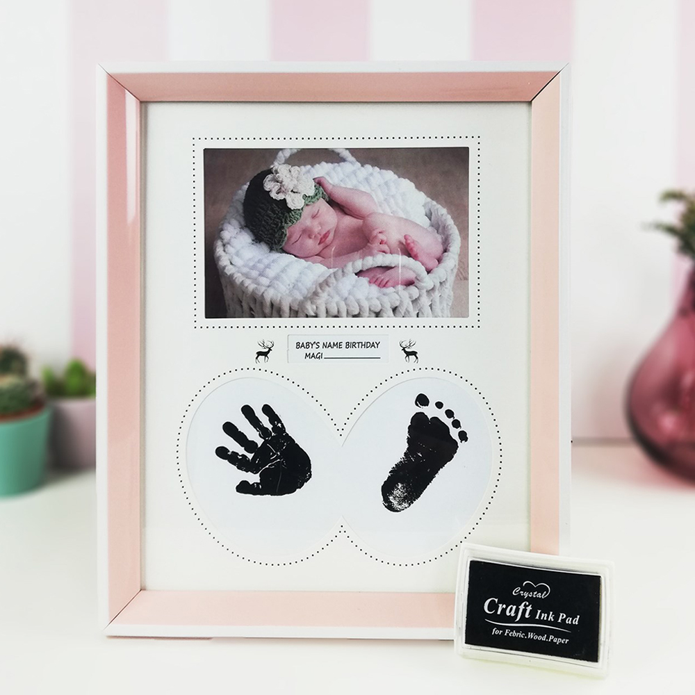 Bebek Çerçevesi, bebeğinizin fotoğrafı, el ve ayak izi bir arada. Kutunun içerisinde bebeklerin tenine zarar vermeyecek bir mürekkep bulunmaktadır.