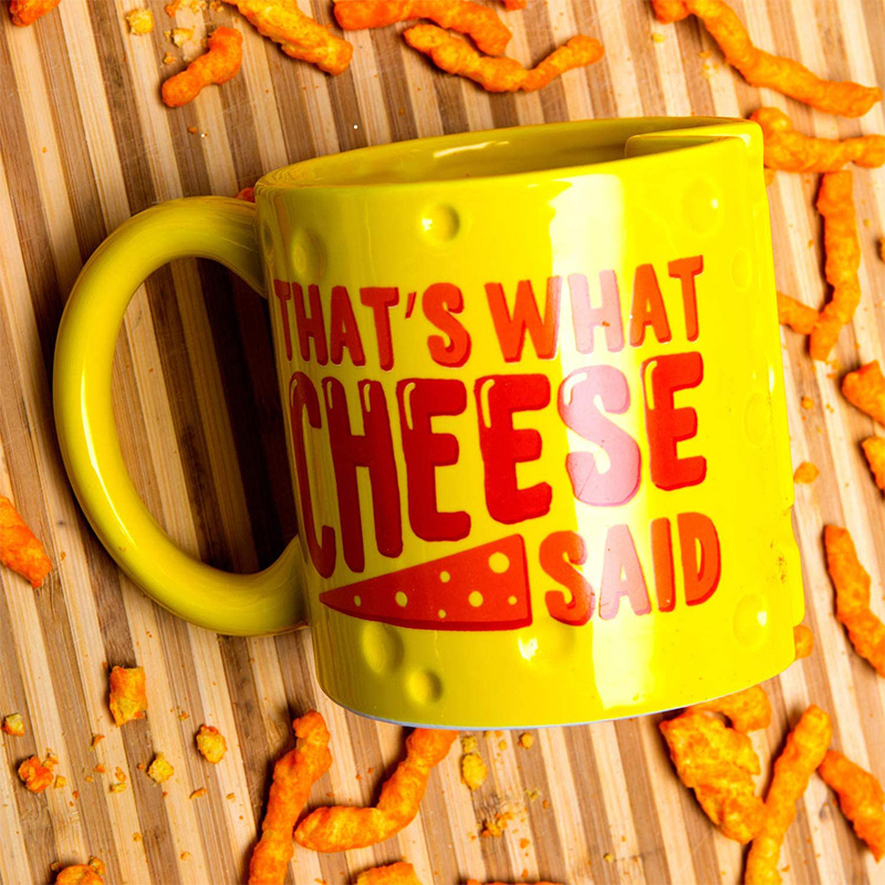 Cheese Mug, peynir tasarımlı sıradışı bir kupa modelidir. Arkadaşlarınıza ve ailenize alınabileceğiniz güzel bir hediye alternatifidir. Sevdiklerinizi şaşırtırken mutlu edebilirsiniz. Oldukça güzel ve ilginç bir hediye olacaktır. Her murfakta bulunması gereken şık ve ergonomik bir kupadır. Seramik malzemeden üretilmiştir. Üzerinde That's What Cheese Said yazılı bir kupadır.