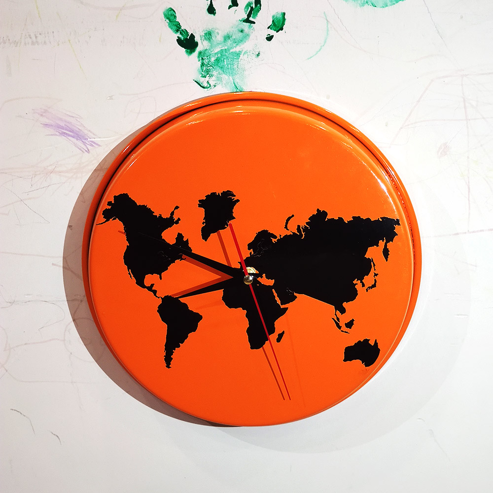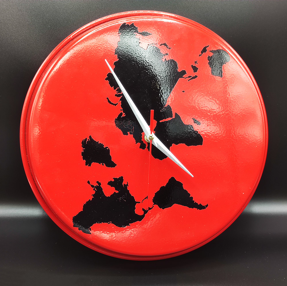 Duvar Saati, kırmızı ve turuncu olmak üzere iki farklı renk seçeneği bulunmaktadır. Duvar Saati üzerinde dünya haritasının silüeti bulunmaktadır. Evlerinize şık ve modern bir hava katacak duvar saati modelidir.