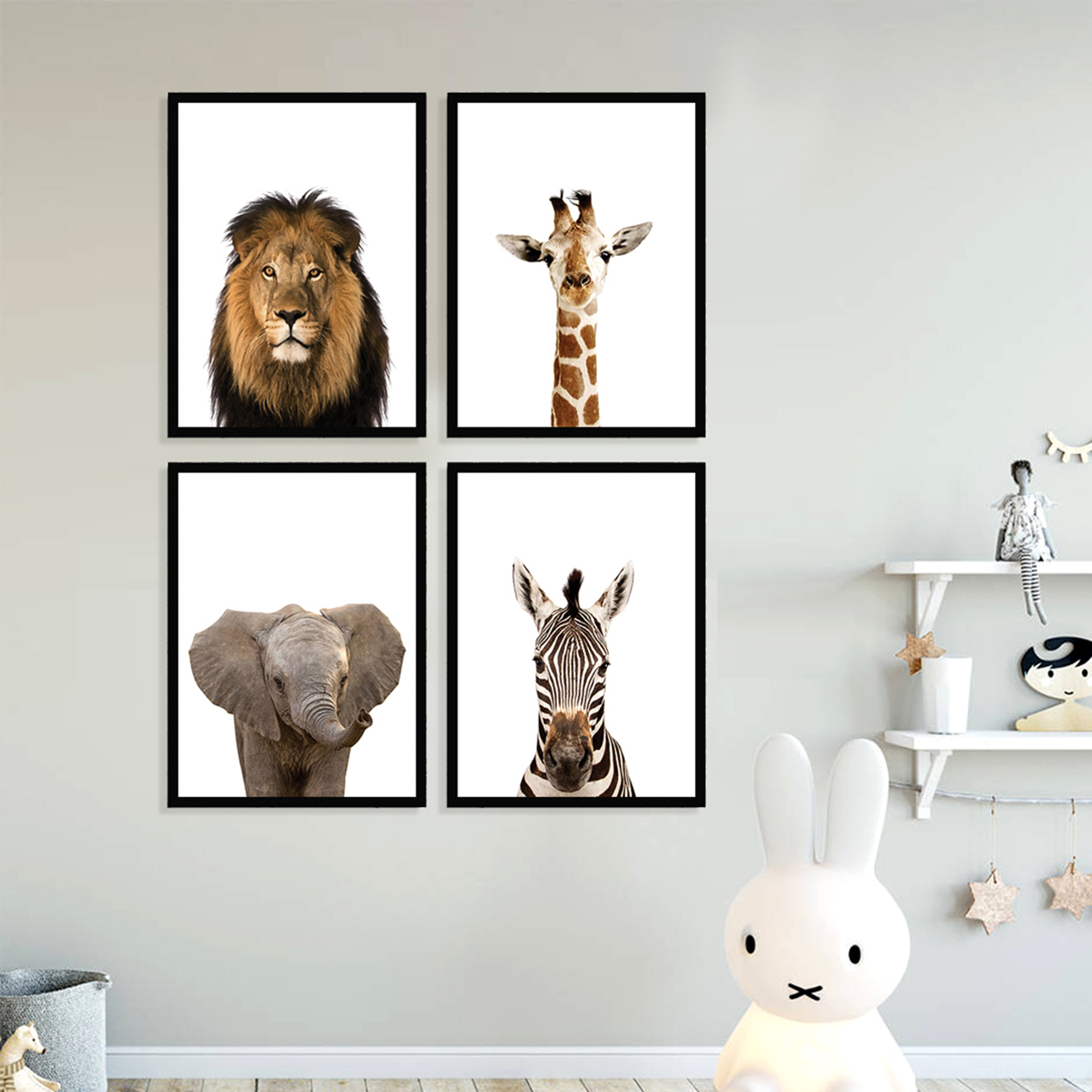 Hayvan Çerçeve Seti, aslan, zürafa, fil ve zebra resminden oluşan bu set evlerinize ve çocuklarınızın odasına hoş bir hava katacaktır.