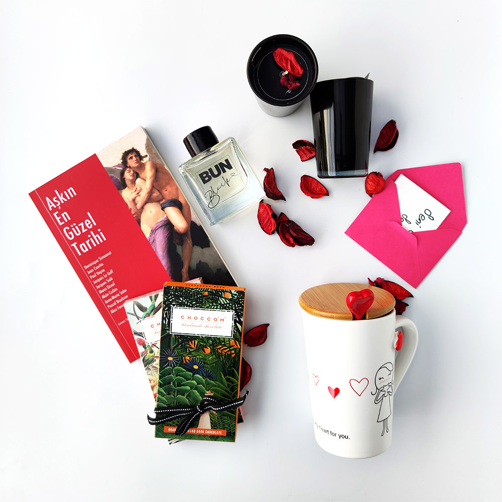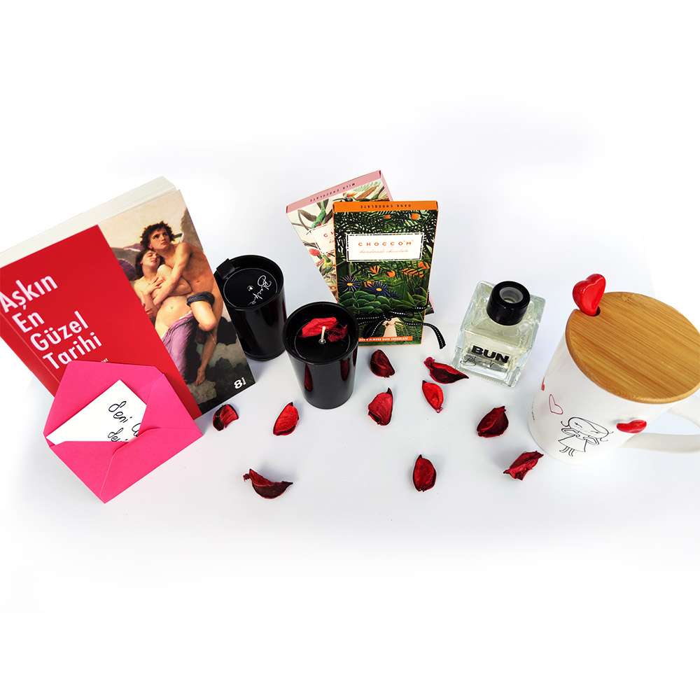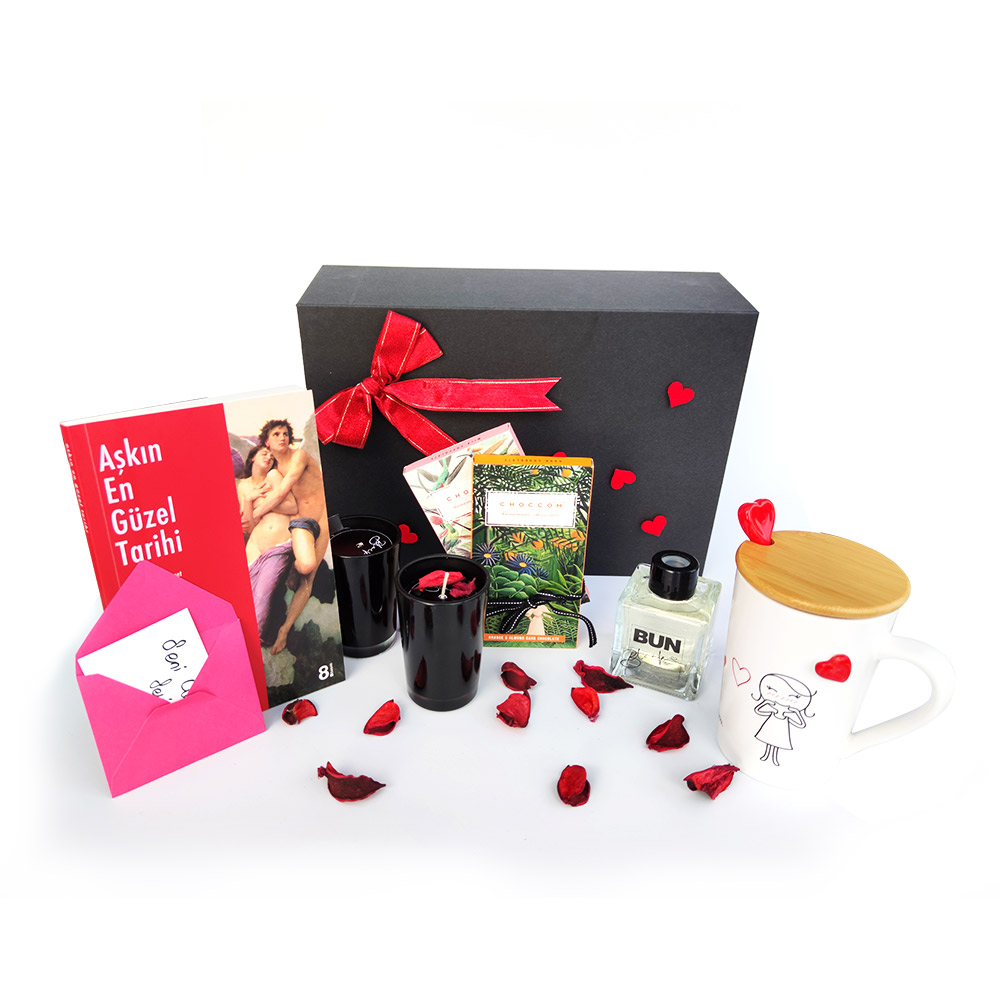 Hediye Kutusu, kupa, kitap, mum ve oda kokusunun şık bir kutu içerisinde bir araya geldiği bu set sevgiliye alınabilecek anlamlı ve hoş bir settir.
