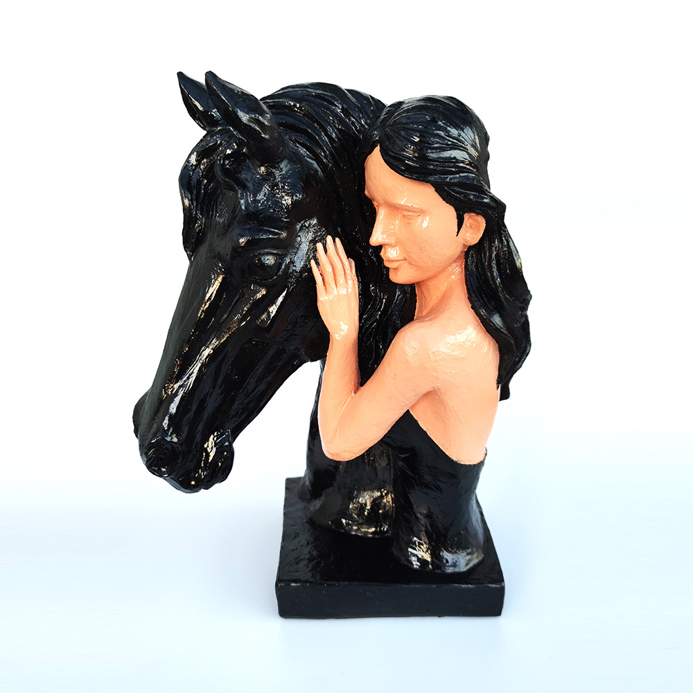 Kadın Ve At Biblo, tamamen el işçiliği boyanmıştır. Polyester malzemeden üretilmiştir.