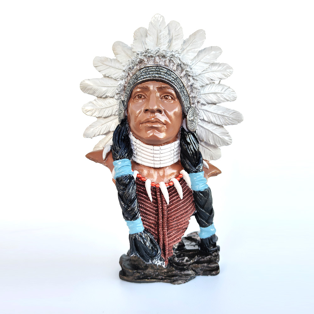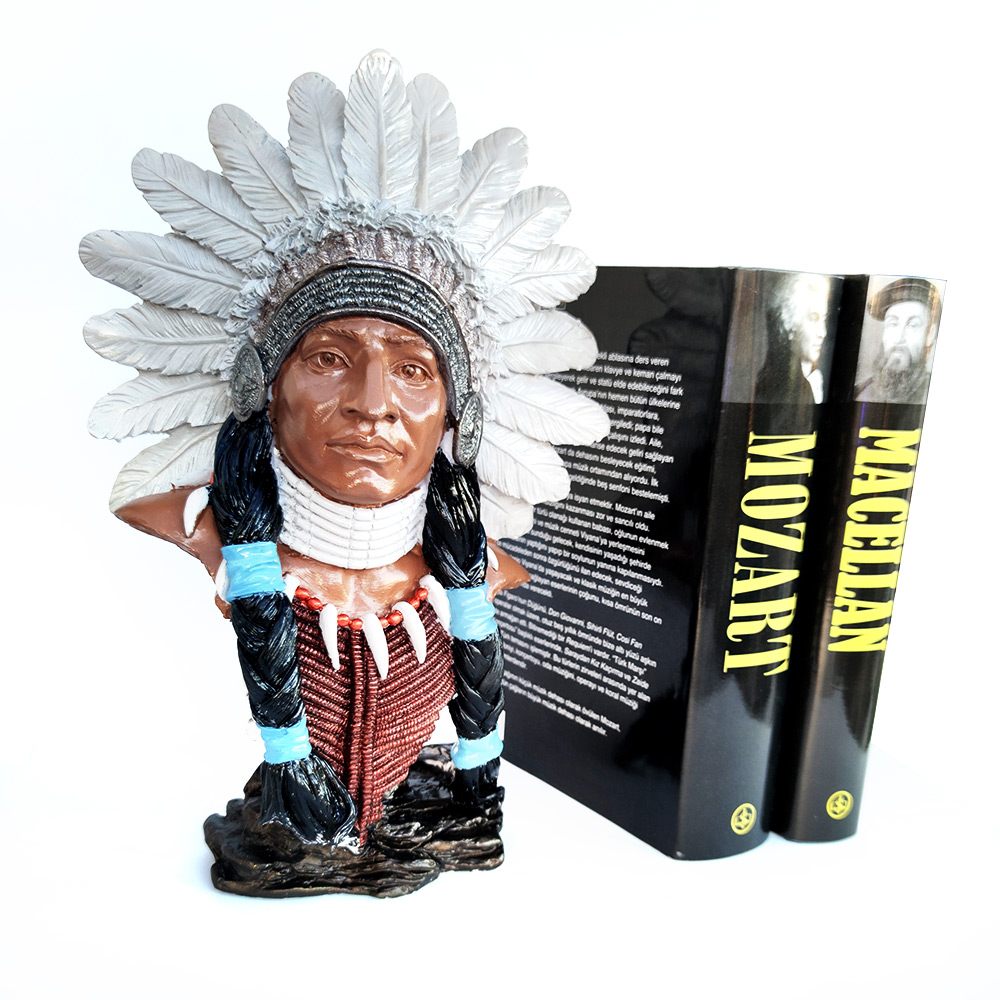 Evlerinizde ve ofislerinizde dikkatleri üzerine çekecek ağır bir objedir. Kızılderili Heykeli, özenle seçilmiş renklerle kusursuz bir şekilde boyanmıştır.