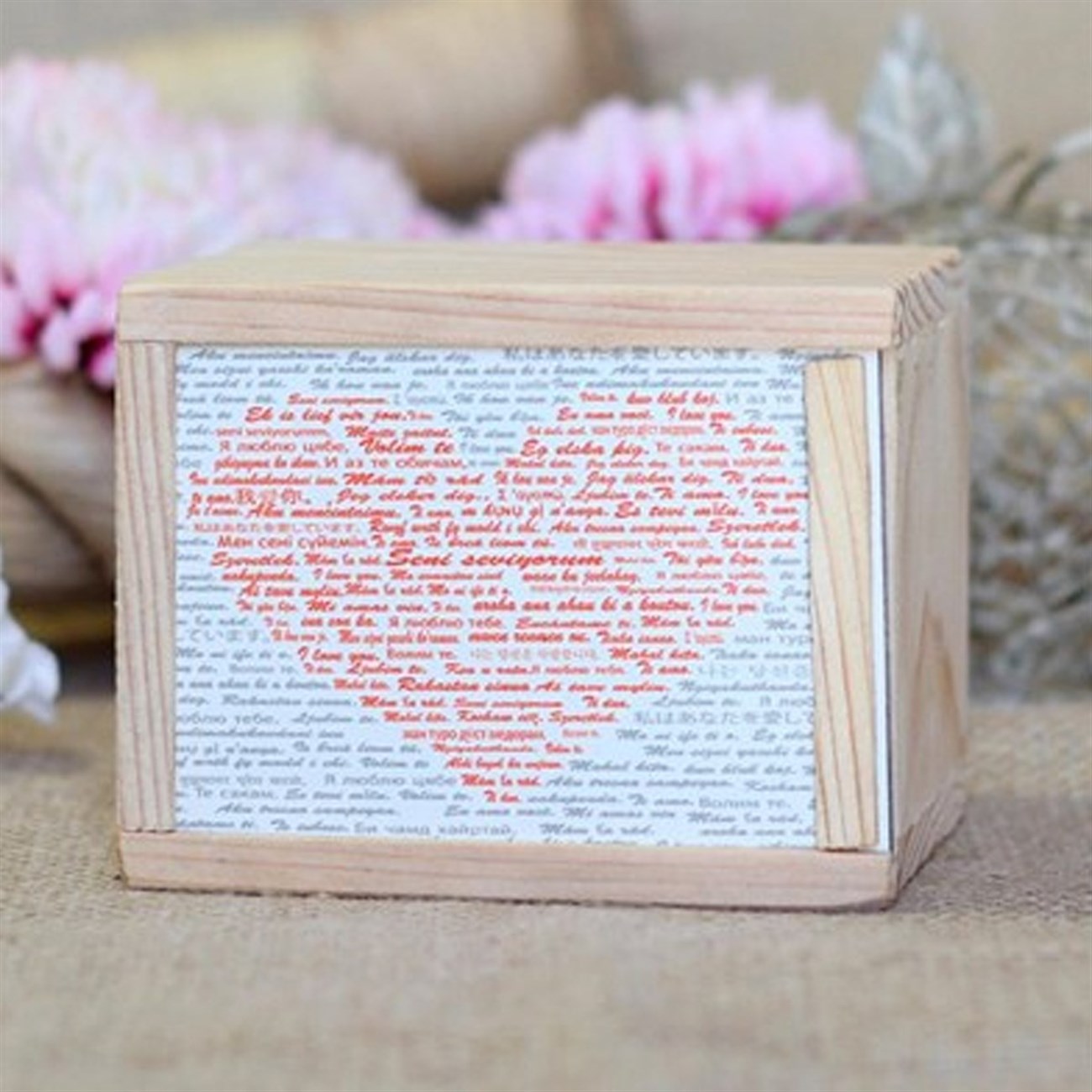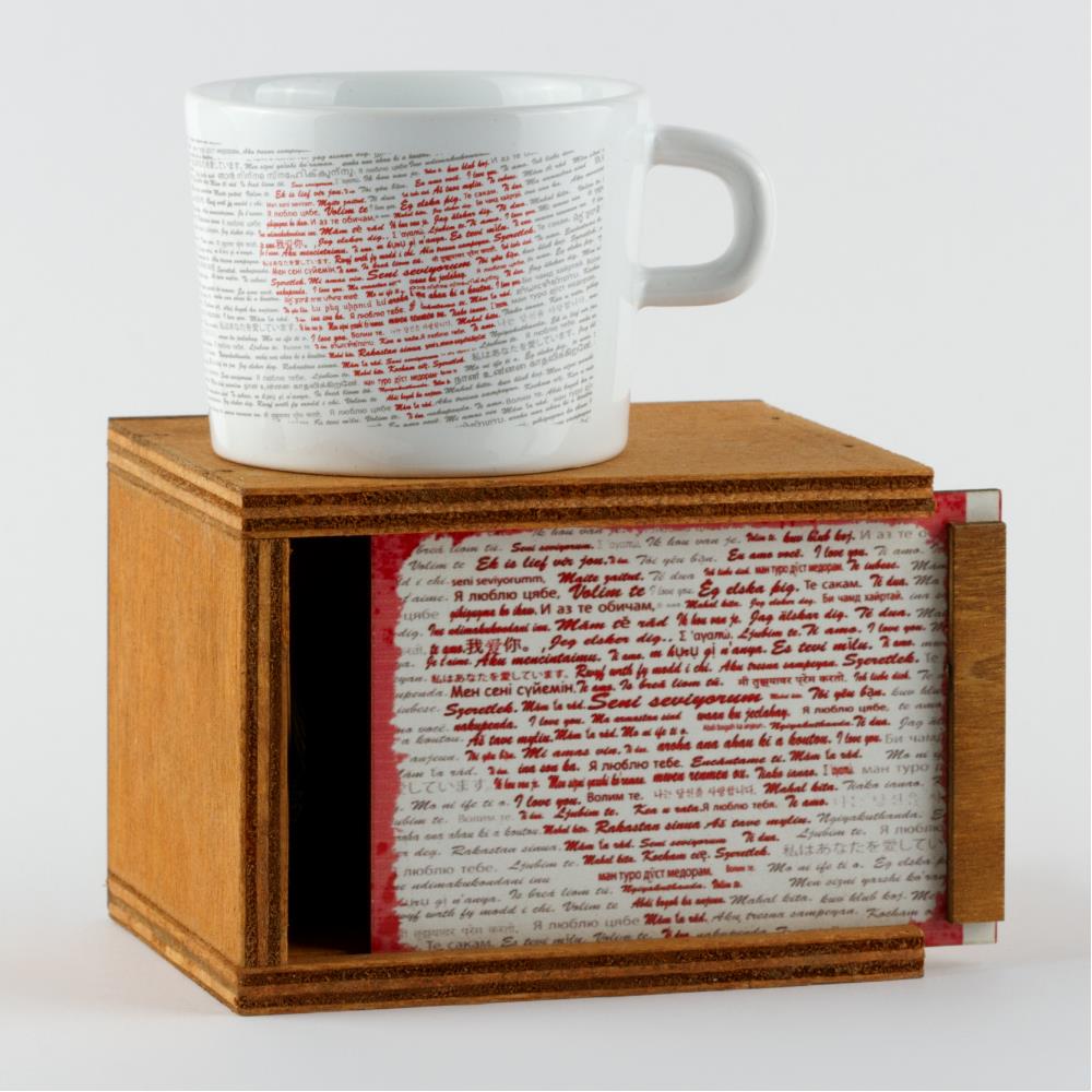 Seni Seviyorum Fincan, 100 farklı dilde seni seviyorum yazmakta ve ahşap bir kutunun içerisindedir. Kutu 12cm x 9cm x 9cm ebatlarındadır. Kupa üzerindeki baskı su bazlıdır. Ürün kupa boyu uzunluğu 5,5 cm ve çapı 8 cmdir.