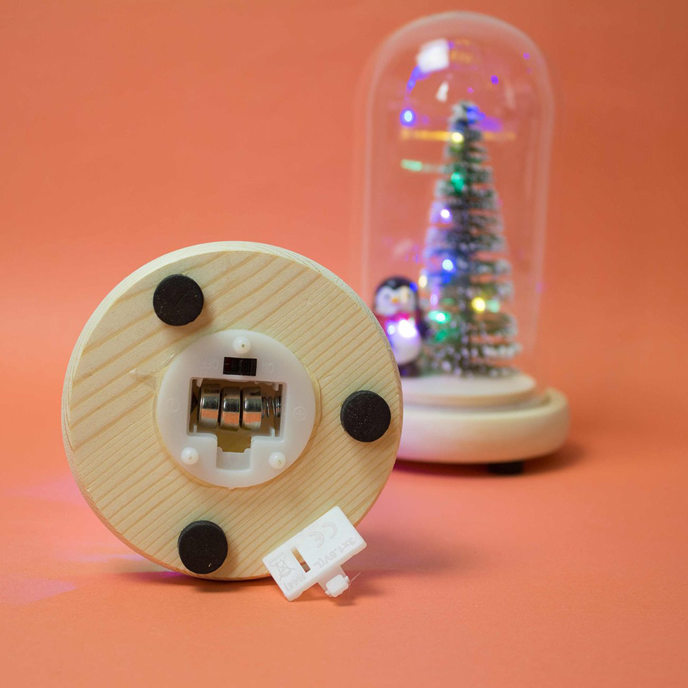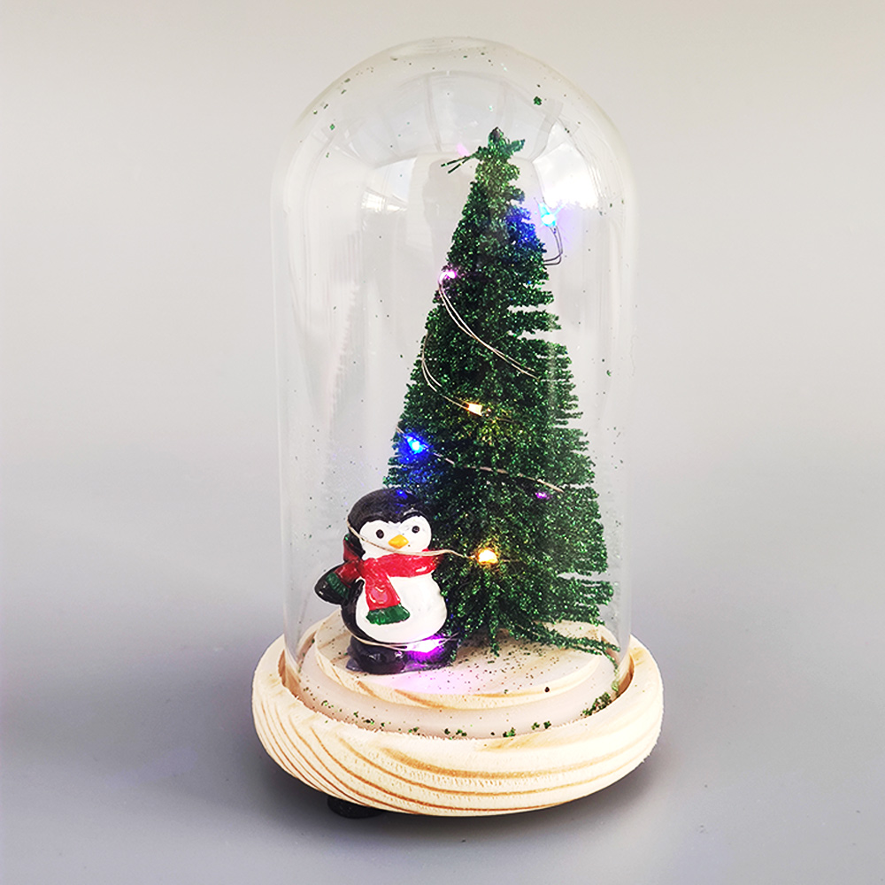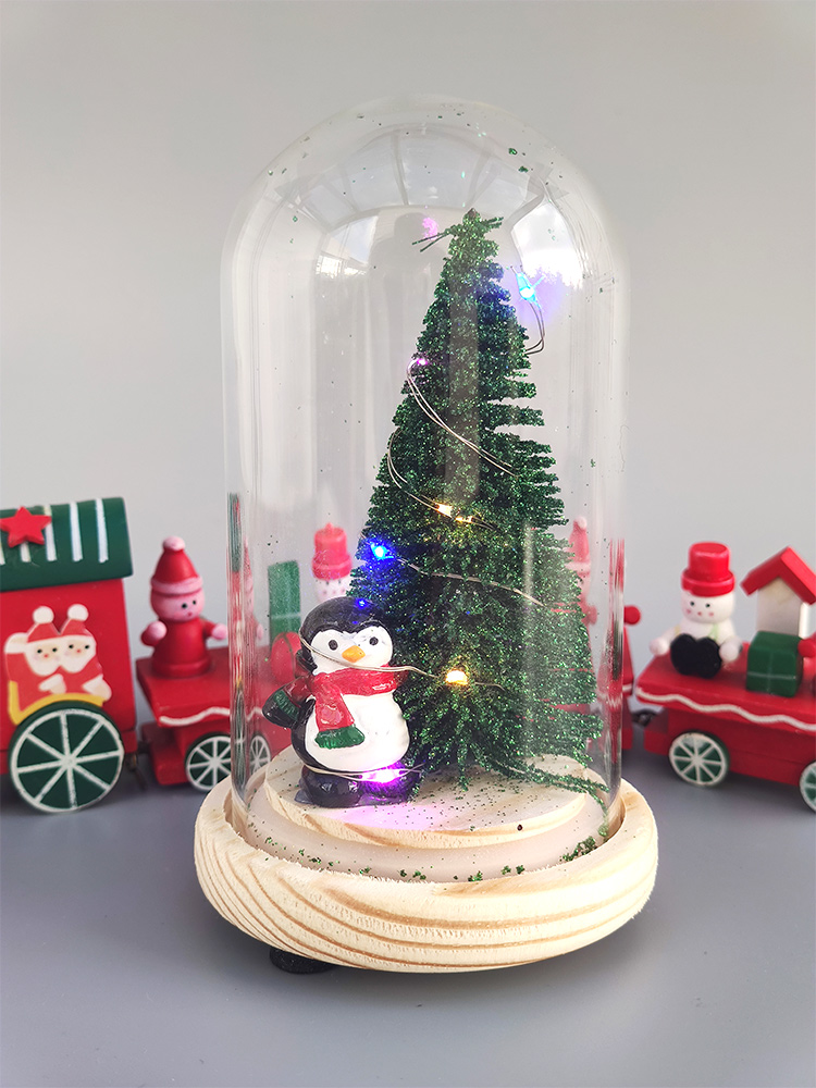 Yeni Yıl Fanusu, kalın cam fanus içerisinde çam ağacı ve penguen bulunmaktadır. Alt kısmında bulunan açma kapama düğmesi ile ışığı yanıp sönmektedir.
