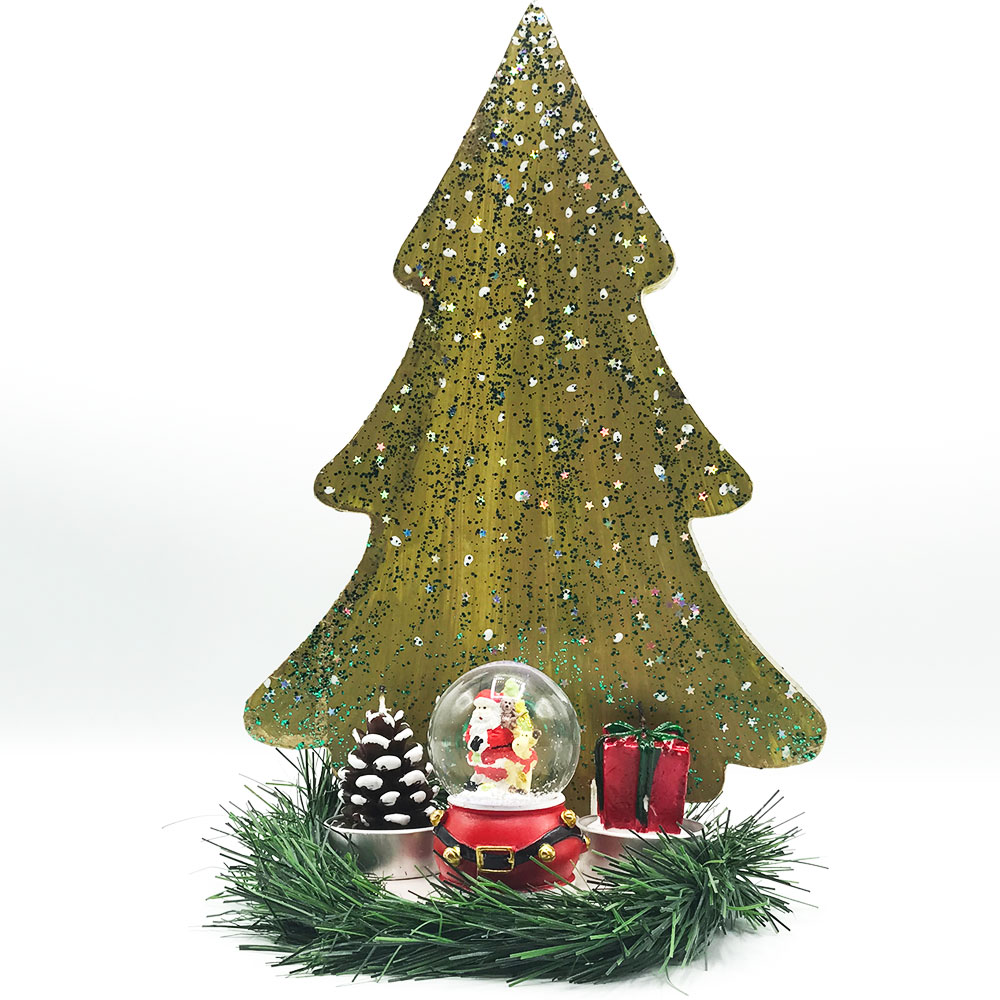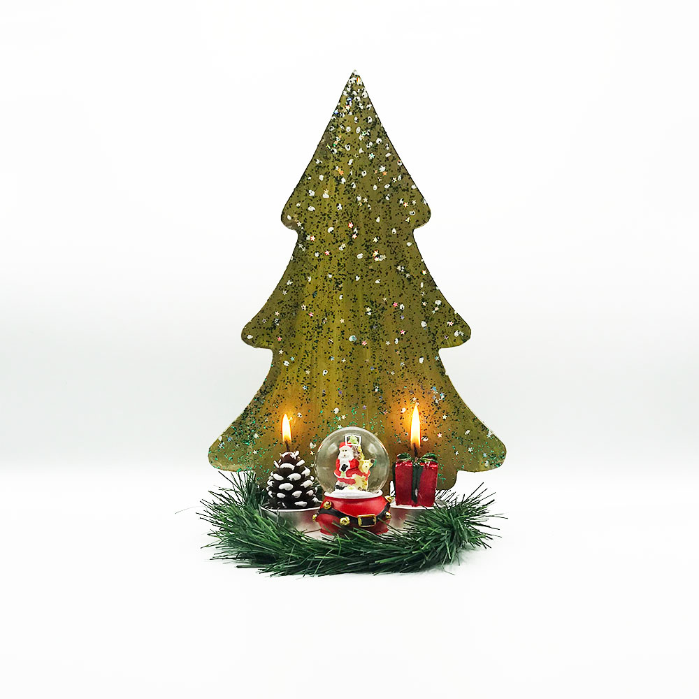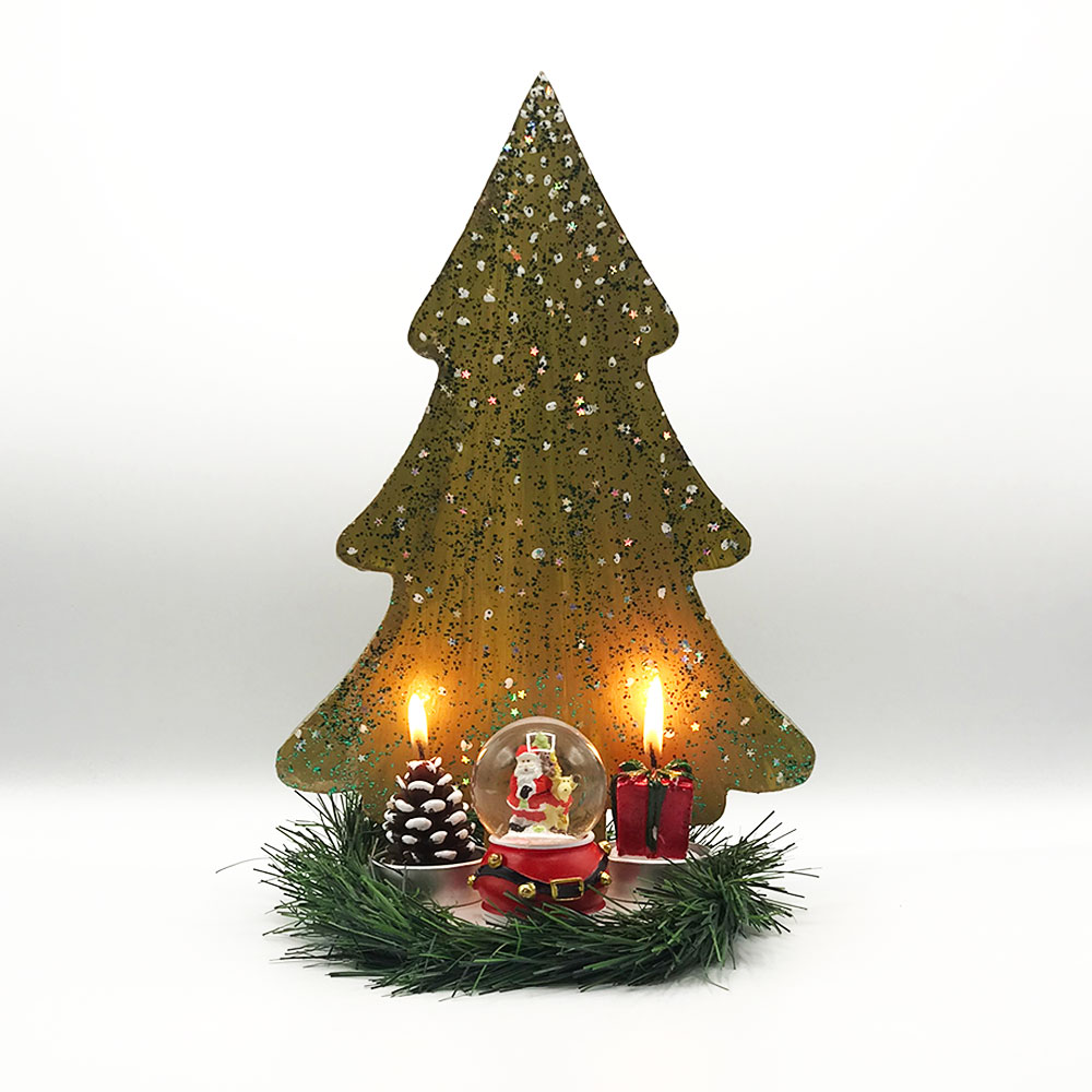 Dekoratif Çam Ağacı, yeni yıla girerken sevdiklerinizle birlikte, mum ışığı ve polyester üzeri yeşile boyanmış gümüş ve yeşil parlak boyalarla süslenmiş oldukça dekoratif ve sıradışı bir tasarıma sahiptir. Evlerinizde ve ofis masalarınızı da parıltıyı yakalama zamanı.