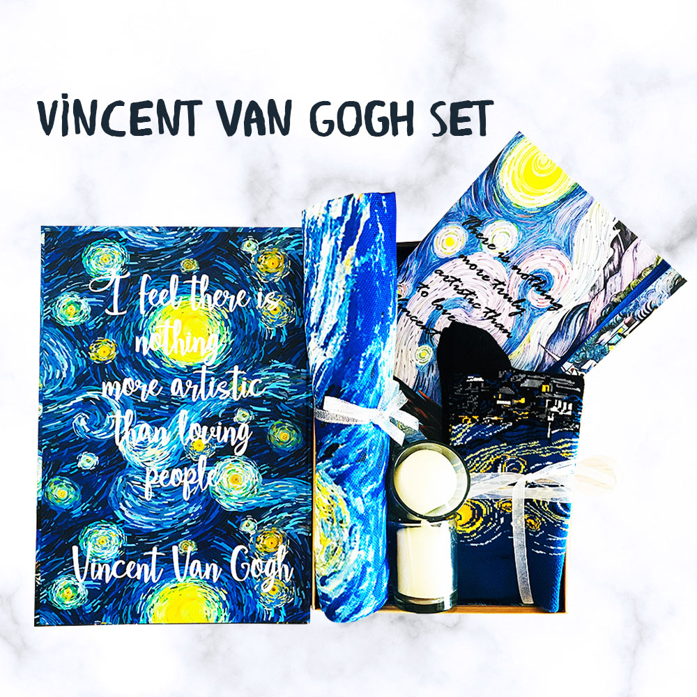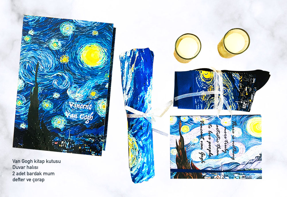 Van Gogh Hediye Kutusu sizler için bir araya getirdik. Van Gogh Batı dünyası sanat tarihinin en tanınmış ve en etkili şahsiyetlerinden biridir. Van Gogh’a ait çalışmalar arasında manzaralar, natürmortlar, portreler ve otoportreler bulunmaktadır Kısa zaman içerisinde portreler ve otoportreler ile ilgili hediye setlerimiz siz değerli müşterilerimize sunuyor olacağız.