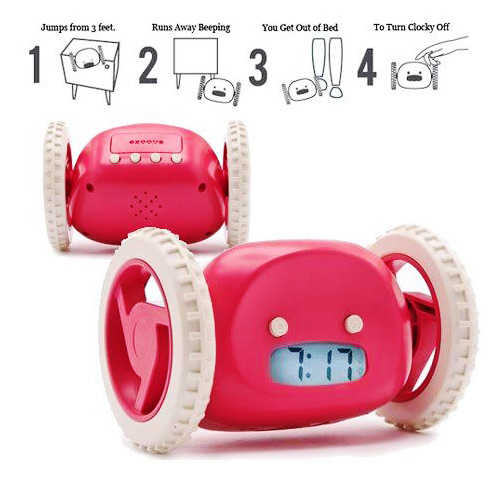 Bu alarm saat malesef sus değince susan çal diyince çalan o bildiğiniz masum saatlerden değil. Bu deli canavar saat alarm saati geldiğinde sizin onu koyduğunuz masadan ya da komidinin üstünden kendini atarak deli gibi koşmaya başlıyor ve kendini sizden saklayacak bir yer arıyor. Siz de o güzel uykunuzdan kalkıp onu yakalayana kadar susmuyor! Bu sayede yataktan kalkamam derdine ve işe geç kalma derdine son.